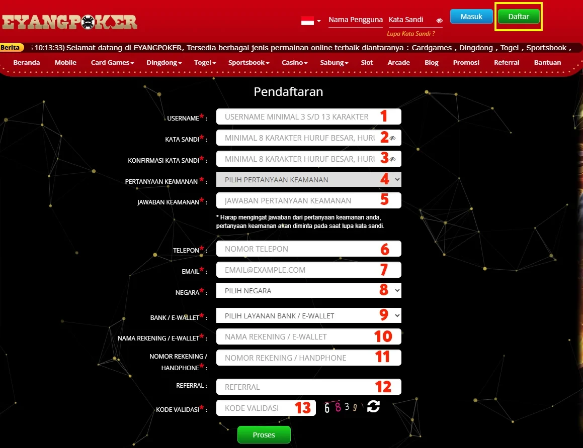 Langkah - langkah untuk membuat akun atau userID di eyangpoker.com :